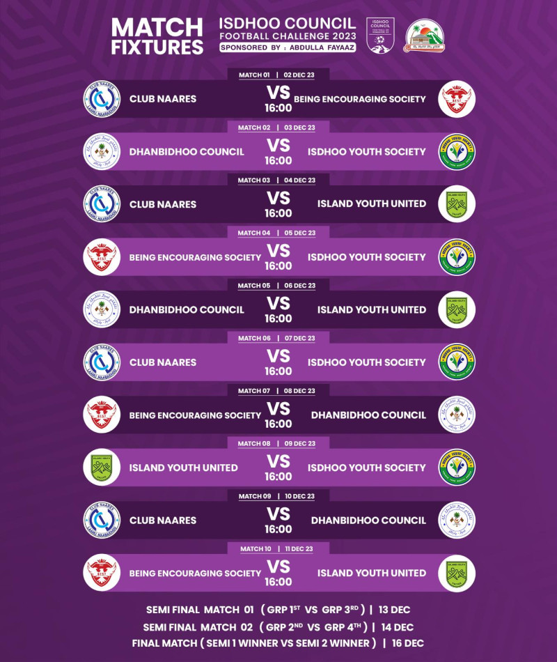 ހައްދުންމަތީ އިސްދޫ ކައުންސިލުން އިންތިޒާމު ކޮއްގެން ކުރިއަށް ގެންދާ "އަބްދުﷲފަޔާޒު އިސްދޫ ކައުންސިލް ފުޓުބޯޅަ ޗެލެންޖް 2023"ގެ ފުޓްބޯޅަ މުބާރާތް ފެށިއްޖެއެވެ.